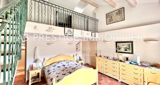 A l'étage, une spacieuse mezzanine, une chambre de maître avec sa salle de bains, douches et WC, deux chambres, salle d'eau, WC, un dressing et un studio sous pente attenant.